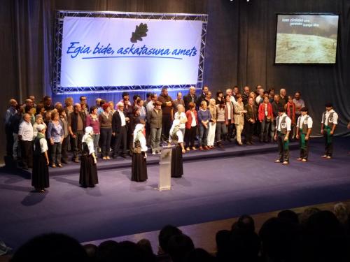 Egia bide, askatasuna amets goiburupean egin zuten ekitaldi hunkigarria. Haritz adaxka iruditzat hartuta, belaunaldiz belaunaldi nola igaro den irudikatuz.