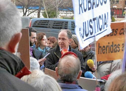 En un gesto absolutamente inusual, el Relator tomó un megáfono para dirigirse a las personas que se habían concentrado ante el hotel de Madrid en el que se celebraba la reunión de la tarde. Se trataba de decenas de víctimas del franquismo. Pablo de Greiff quiso recalcar así «el compromiso» de la ONU para escuchar sus reivindicaciones y analizar la actuación del Estado español.
